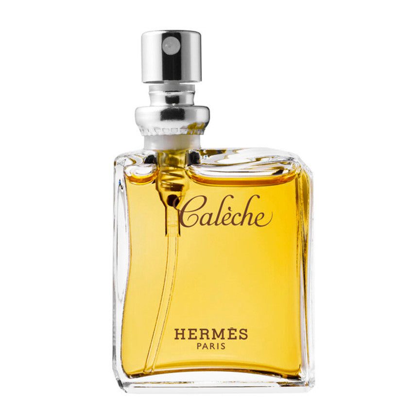 CALECHE is the first women’s fragrance from HERMES. It is a very feminine woody, chypre floral, whose name refers to the horse-drawn carriages that are emblematic of the house. Calèche is a novel that dazzles thanks to the beauty of its raw materials, from the cheerfulness of citrus fruit to the modernity of aldehyde notes; from the floral heart embellished with ylang-ylang, rose and jasmine to the woody, chypre sillage underscored with the nobility of irises. Pure perfume represents the extreme elegance and refinement of a floral bouquet, married with the nobility of the woods.