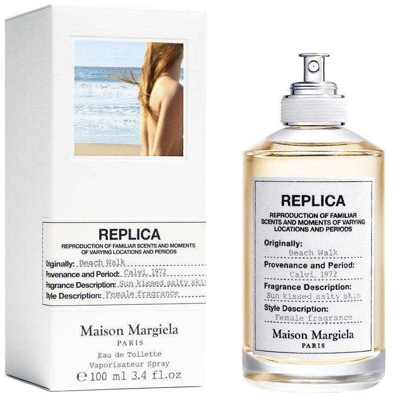 Maison Margiela Replica Beach Walk Introducing Beach Walk from the Replica Collection by Maison Martin Margiela, a of fragrances designed to evoke images, impressions and positive emotions that reflect our personal memories. Containing fresh and radiant notes of bergamot, lemon, pink pepper and ylang-ylang, Beach Walk evokes hints of ocean spray and brings to mind white sandy dunes in the height of summer.